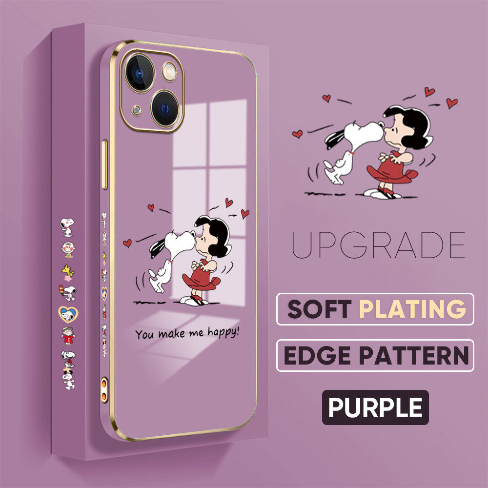 Pmp Casing Case Compatible With Apple Iphone 14 Plus Iphone 14 Iphone 14 Pro Iphone 14 Pro Max Casing Free Lanyard Happy Cartoon Snoopy Square Edge Pattern Casing Plated Phone Shell Luxury Plating Soft